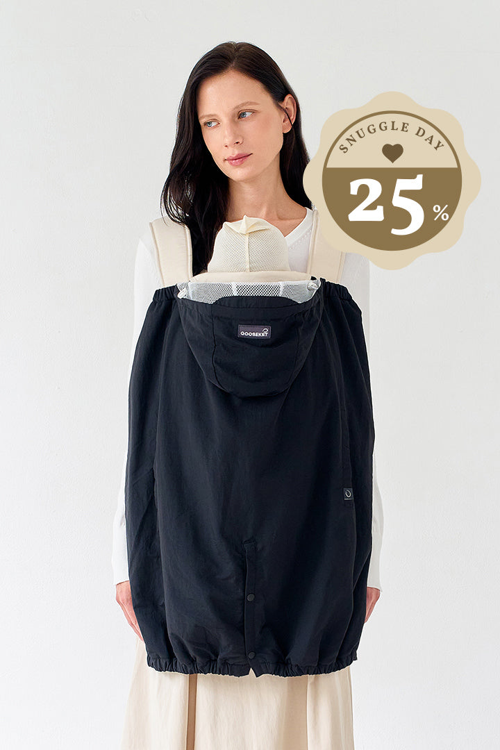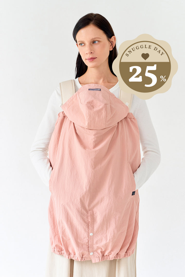 This cover really got you covered from the wind, rain, and sun. I was gifted this baby carrier cover, and it has been my go-to baby product whenever I need to shield my baby from the elements. I like that this cover has pockets since they are useful when I need to store anything away, especially when wearing leggings without pockets. I particularly appreciate that this cover protects my baby from the sun as well as from getting wet from the rain, unlike some others. Another thing I really enjoy about this cover is that it is much easier to keep clean and dry than a fabric one. I, also love that this cover can be clipped onto any kind of stroller and carrier you have and can grow with baby. one thing I would like to mention is that it is too big for a 4-month-old to wear as a jumpsuit. Also, I wish the waist strap was adjustable. all in all, I would recommend and buy this product.