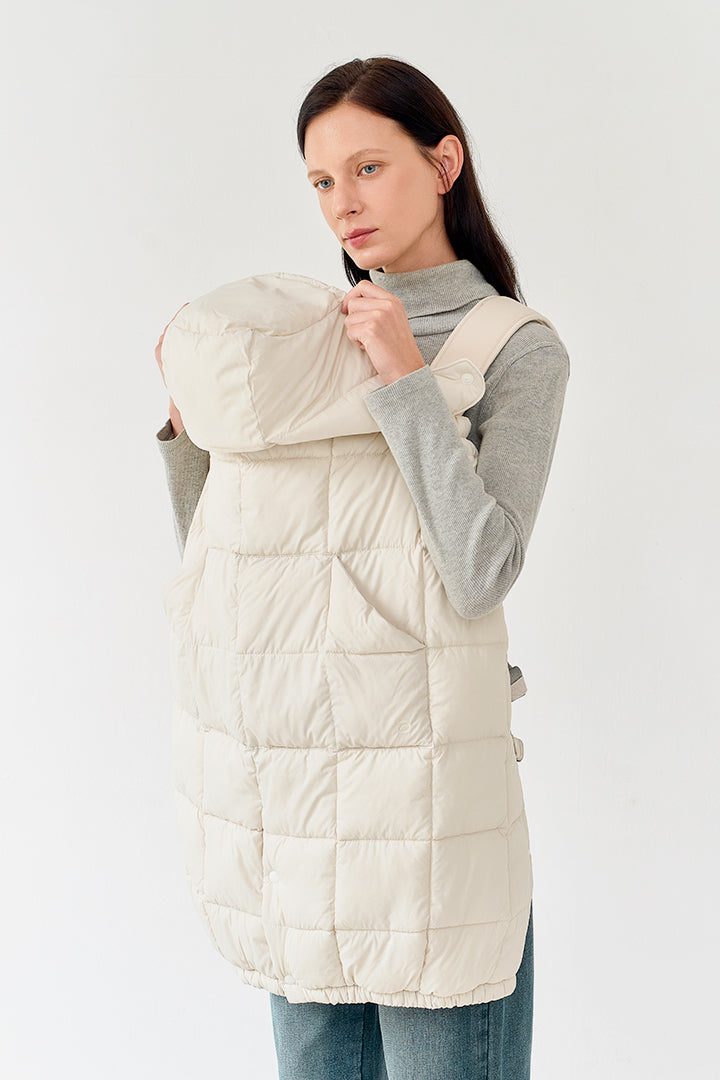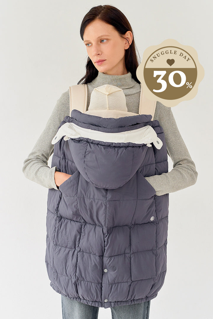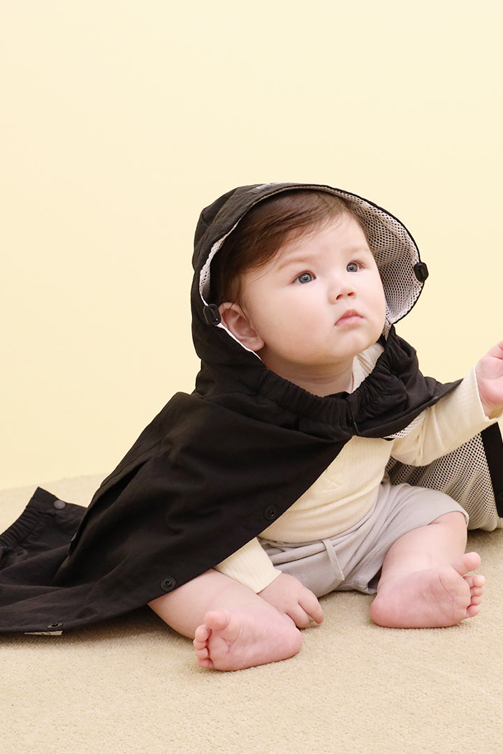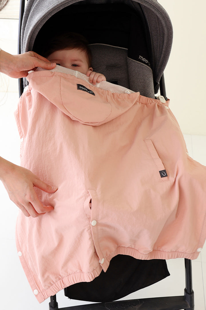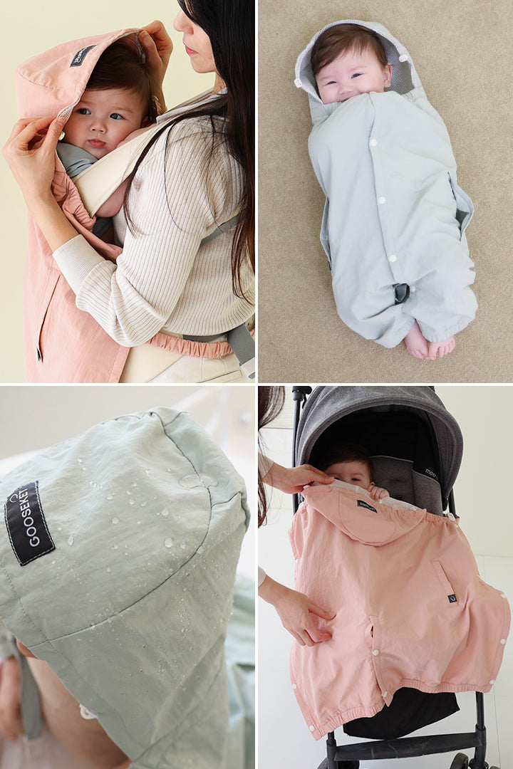 Based on a mother's experience, this baby carrier cover has been designed to have multi-usages during unpredictable changes on an outing with your baby.