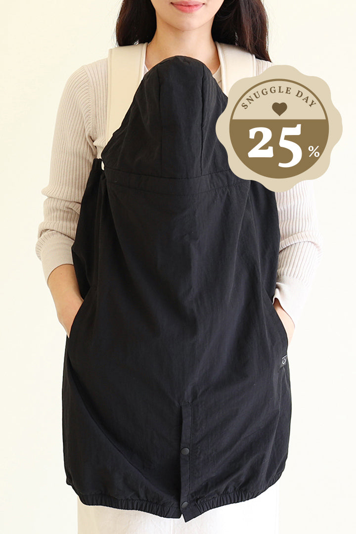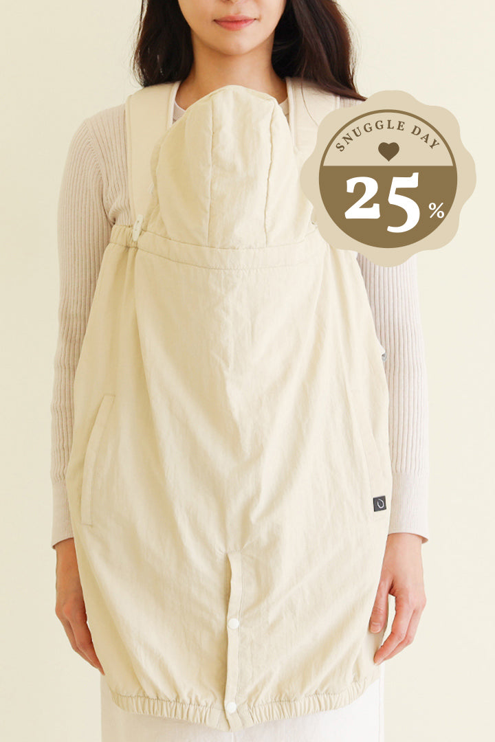 Based on a mother's experience, this baby carrier cover has been designed to have multi-usages during unpredictable changes on an outing with your baby.